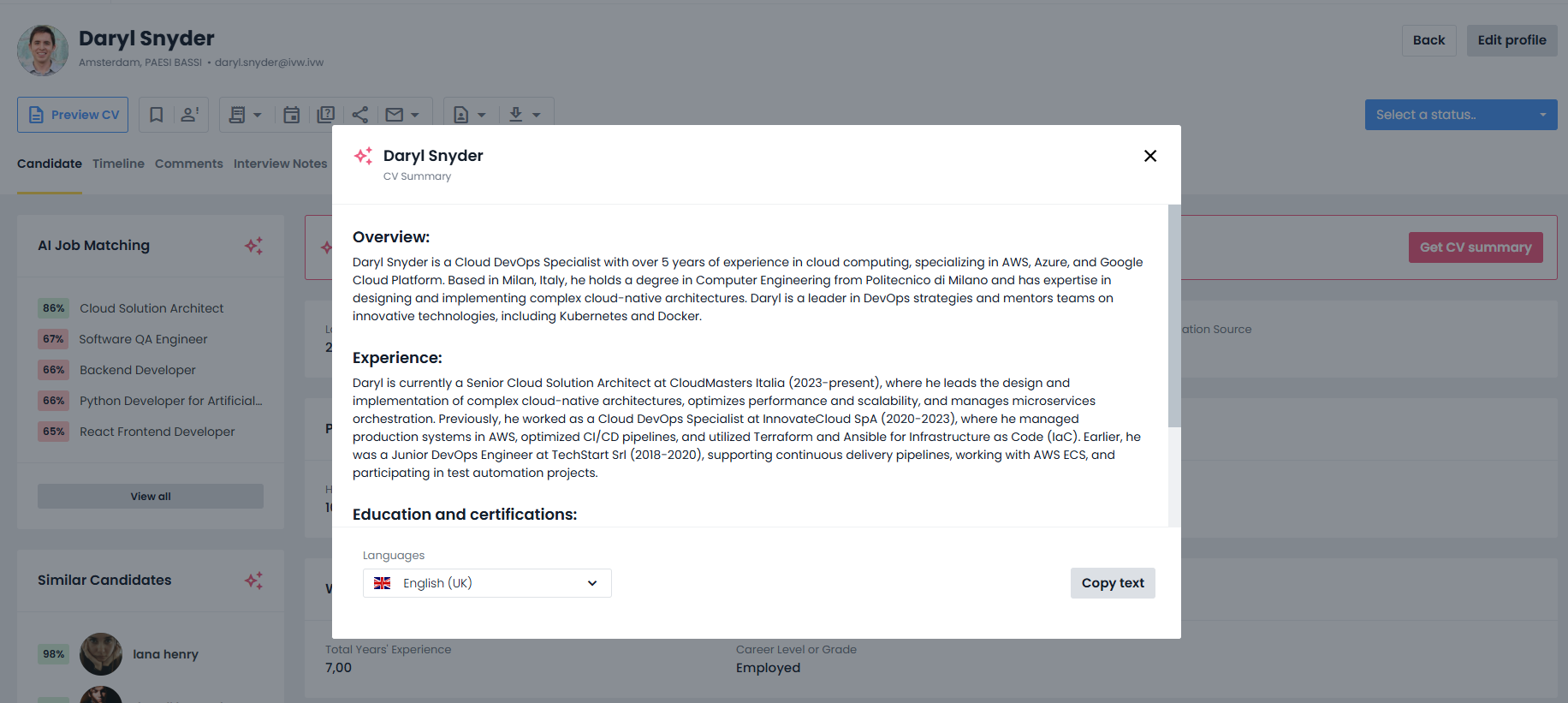 The benefits offered by this feature are numerous: for example, it allows users to analyze and evaluate different profiles in less time, thanks to structured and concise data they can rely on, without having to review entire résumés.
