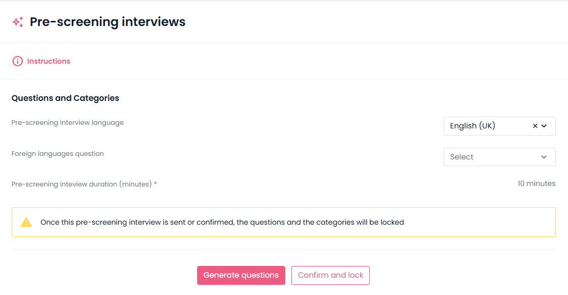 • Pre-screening interview duration (minutes): maximum duration of the interview.